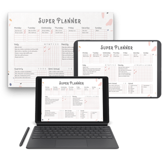 Nossos planners te ajudam na melhora da organização uma vez que oferecem uma estrutura clara para planejar e organizar tarefas, compromissos e metas, reduzindo a sensação de caos. Ajudam a visualizar todas as tarefas em um só lugar, facilitando a priorização delas e a gestão do tempo. A produtividade também tem um impacto positivo, pois os planners permitem dividir tarefas grandes em etapas menores e mais gerenciáveis, tornando-as menos intimidantes.